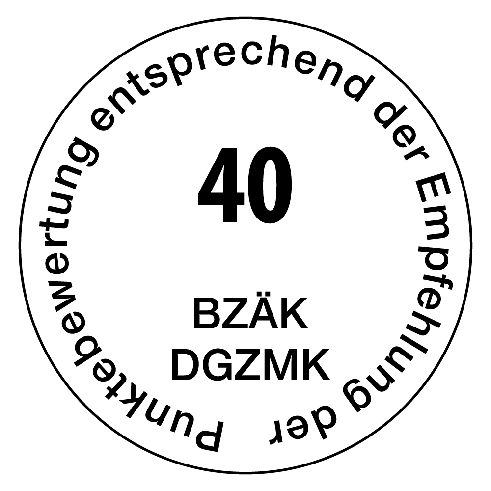 Nach erfolgreicher Absolvierung des Fragebogens erhalten Sie ein Zertifikat mit 40 Fortbildungspunkten nach BZÄK/DGZMK Richtlinien.